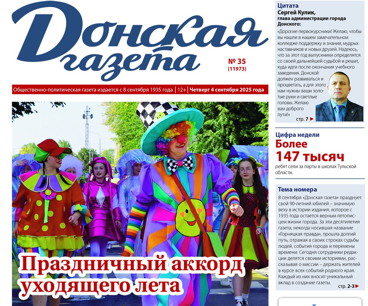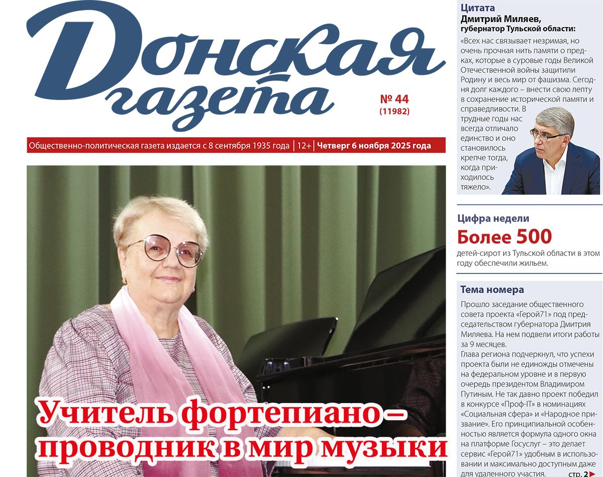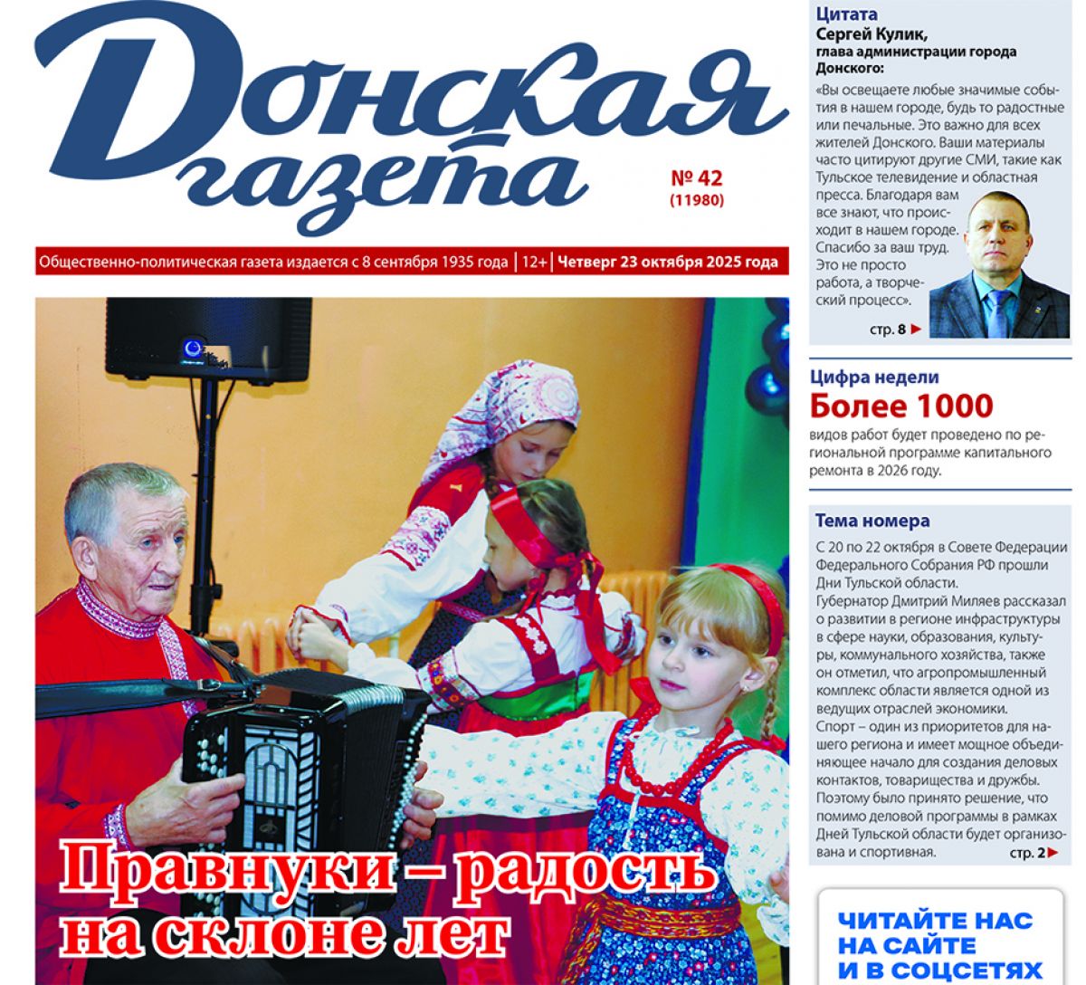 Из cегодняшнего выпуска нашей газеты вы узнаете, что в Совете Федерации Федерального Собрания РФ прошли Дни Тульской области; что было сделано в Донском в 2025 году по проекту «Формирование комфортной городской среды»; а также узнаете еще много интересного.