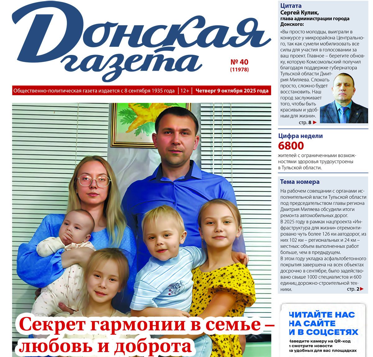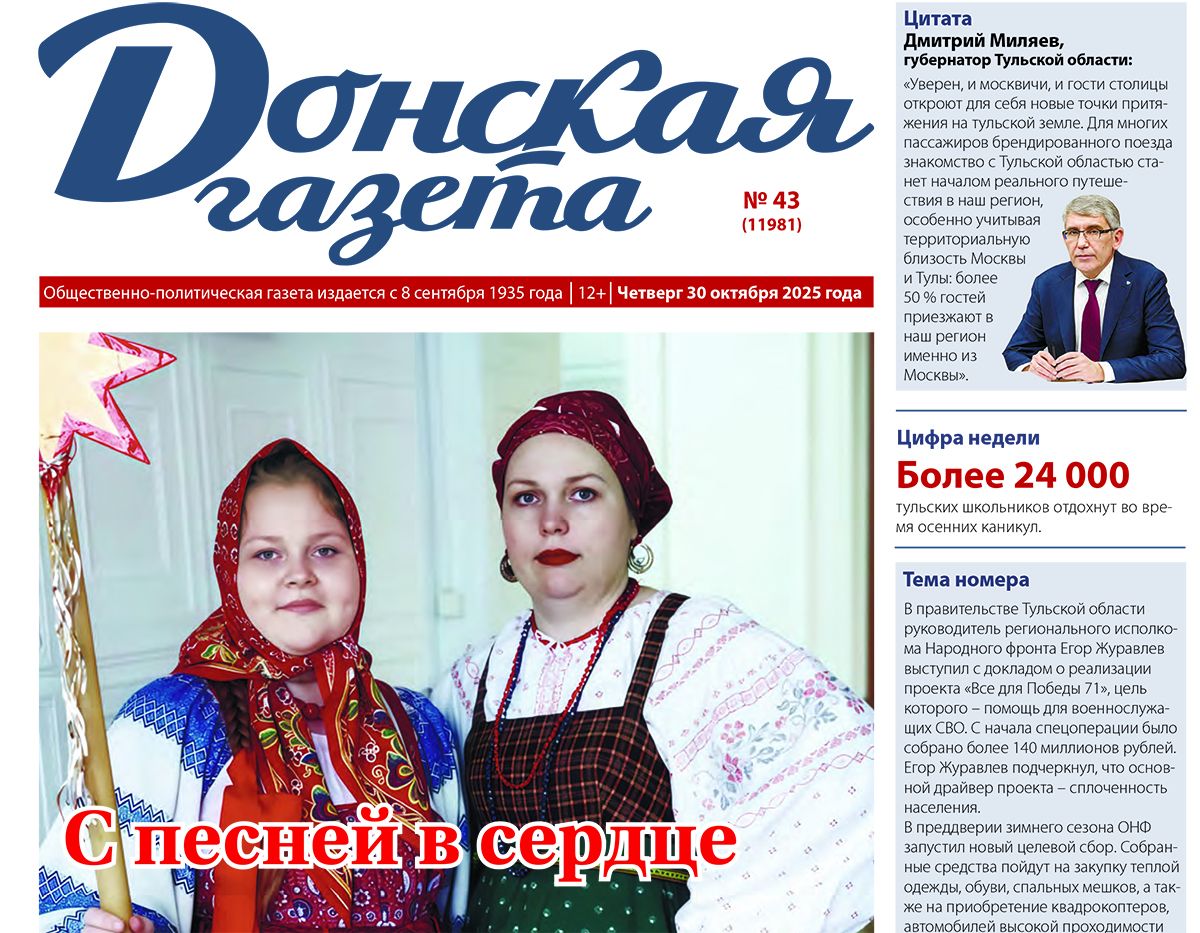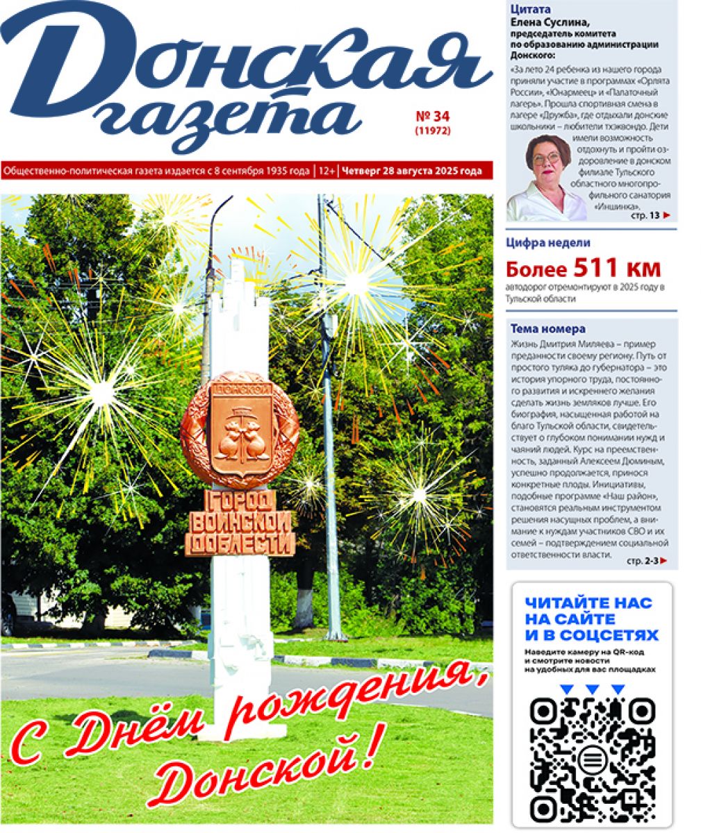 Из cегодняшнего выпуска нашей газеты вы узнаете, что в Совете Федерации Федерального Собрания РФ прошли Дни Тульской области; что было сделано в Донском в 2025 году по проекту «Формирование комфортной городской среды»; а также узнаете еще много интересного.