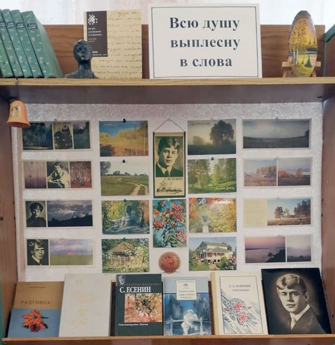 В Центральной городской библиотеке имени Л. Н. Никоновой оформлена выставка-портрет «Всю душу выплесну в слова», посвященная 130-летию со дня рождения Сергея Есенина.