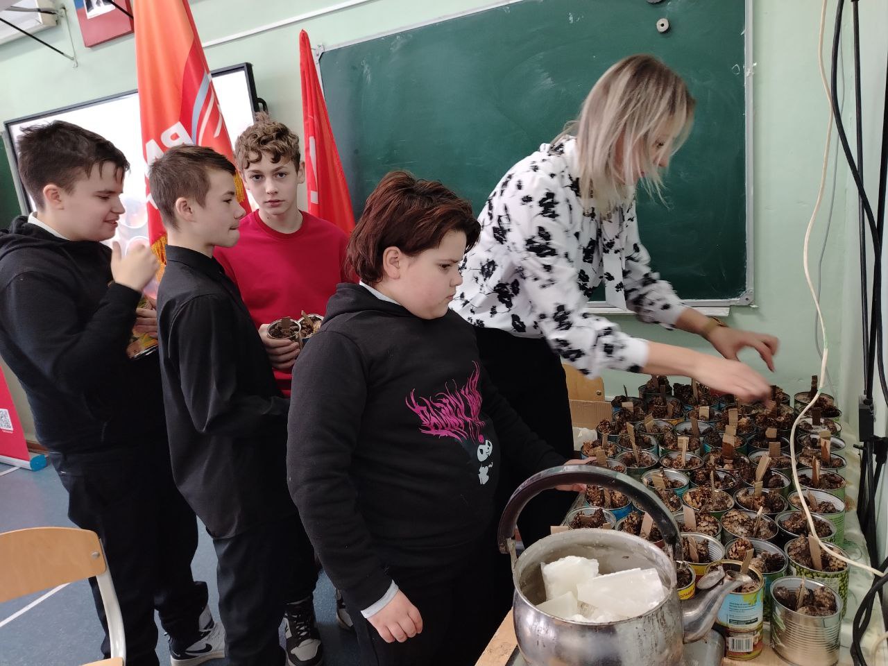 Ключевым моментом акции стало совместное творчество. К активистам Донской школы № 1 на Бобрик - Горе присоединились их товарищи из юнармейского отряда средней школы № 7. Вместе, помогая друг другу, ребята наладили небольшой, но эффективный производственный процесс. Под руководством наставников они аккуратно заполняли жестяные банки картоном и воском, создавая простые, но такие необходимые изделия.