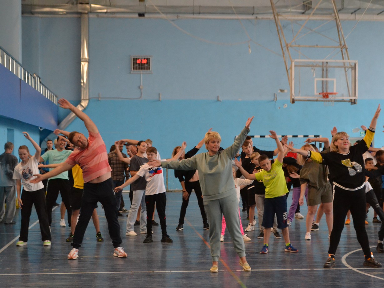 В спортзале Донского спортивного комплекса в 10.00 12 августа началось веселое и полезное для здоровья мероприятие – городская зарядка.