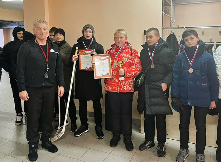 Школьники поиграли в хоккей в валенках
