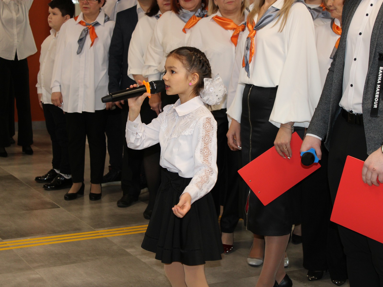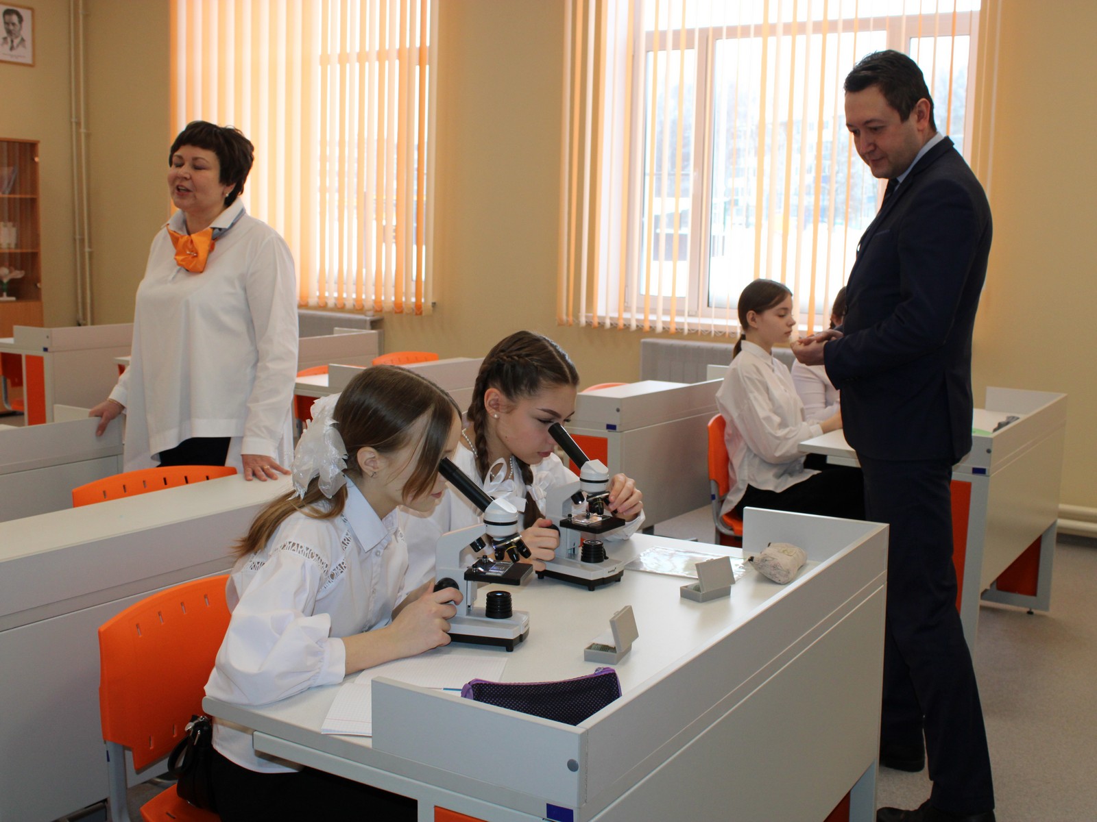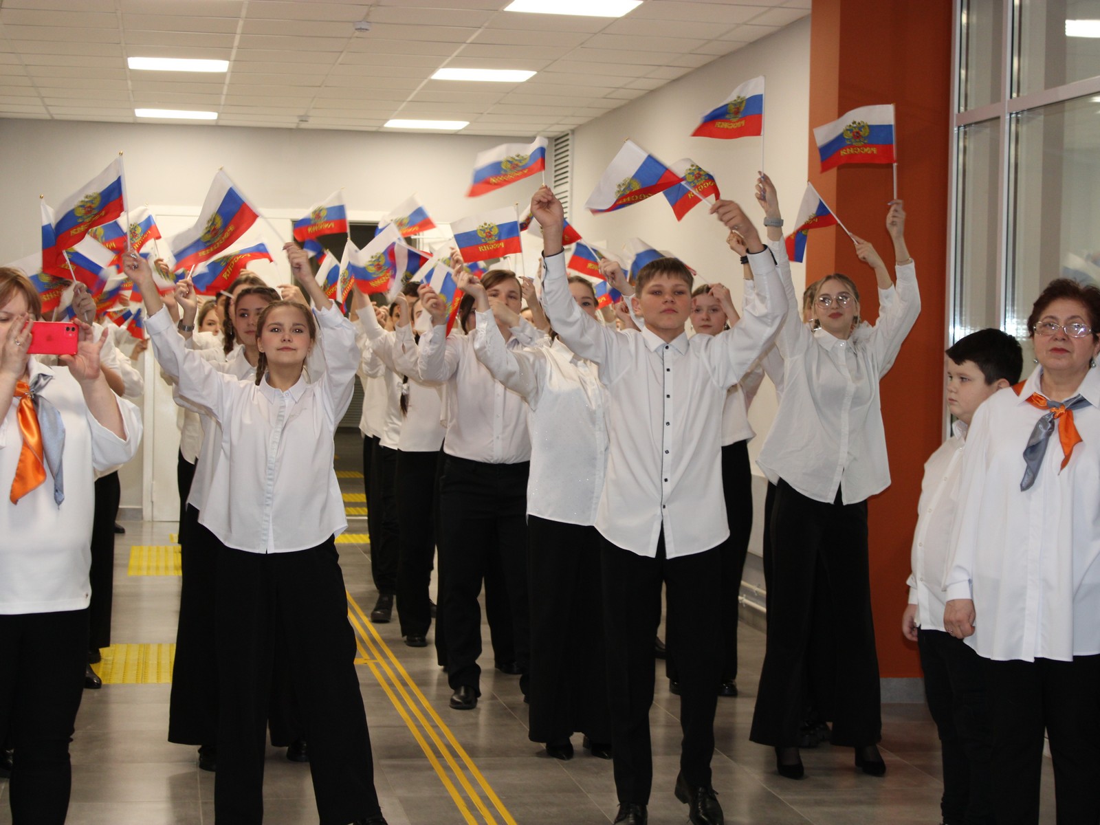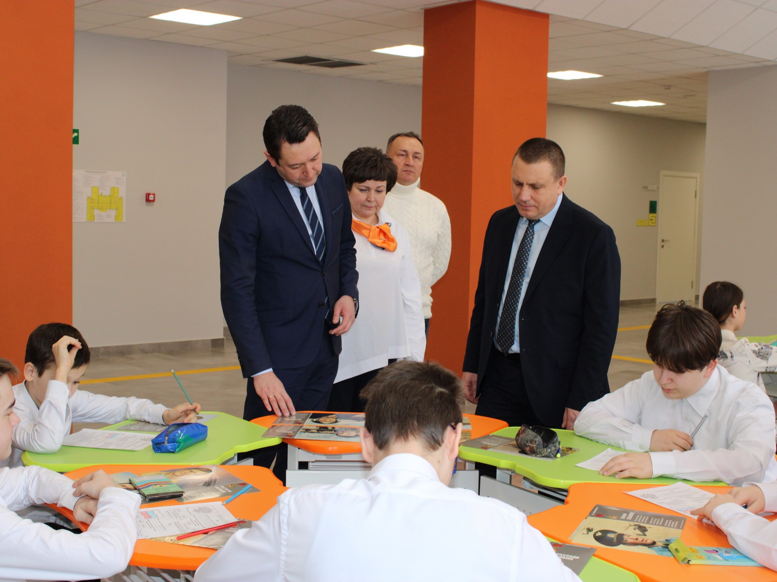 Линейка была завершена, и почетные гости мероприятия прошли с экскурсией по новому зданию школы № 2, посетив спортзалы, столовую, учебные классы, лаборатории, библиотеку, медблок и другие помещения.