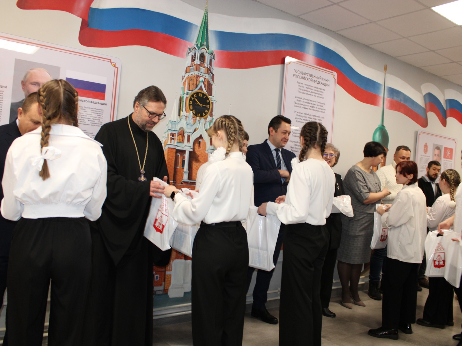– Мы все радуемся, глядя не только на новую школу, но и на ваши молодые, счастливые лица, – отметил он. – Молодыми можно оставаться всю жизнь, если соединить ее с верой, тогда душа человека не стареет. Я желаю всем – и педагогам, и детям – чтобы вы нашли в себе веру. Чтобы вы в этой школе научились главному – быть человеком. Божие благословение на это великое и нужное всем дело.
