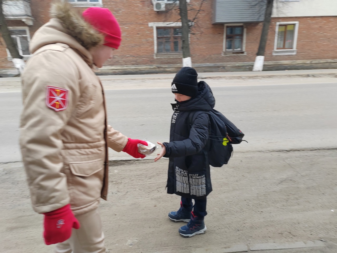 Донские юнармейцы провели акцию «Блокадный хлеб» в нескольких микрорайонах