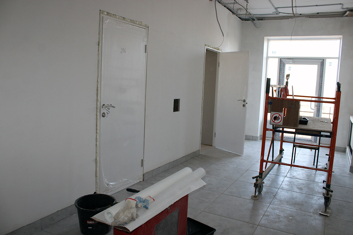 Когда мы проходили по коридорам, рабочие устанавливали двери в будущие врачебные кабинеты. А новые окна давно заняли свои места в проемах.