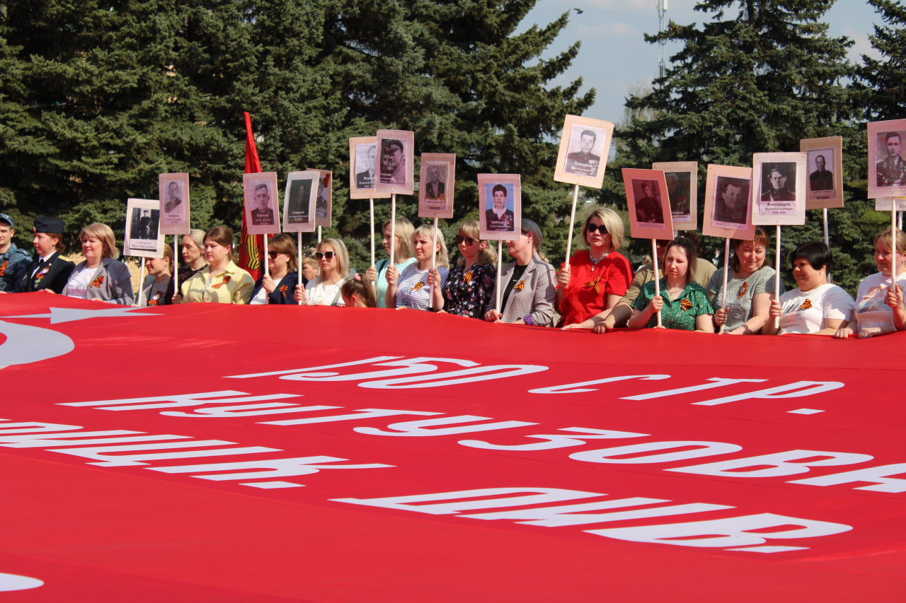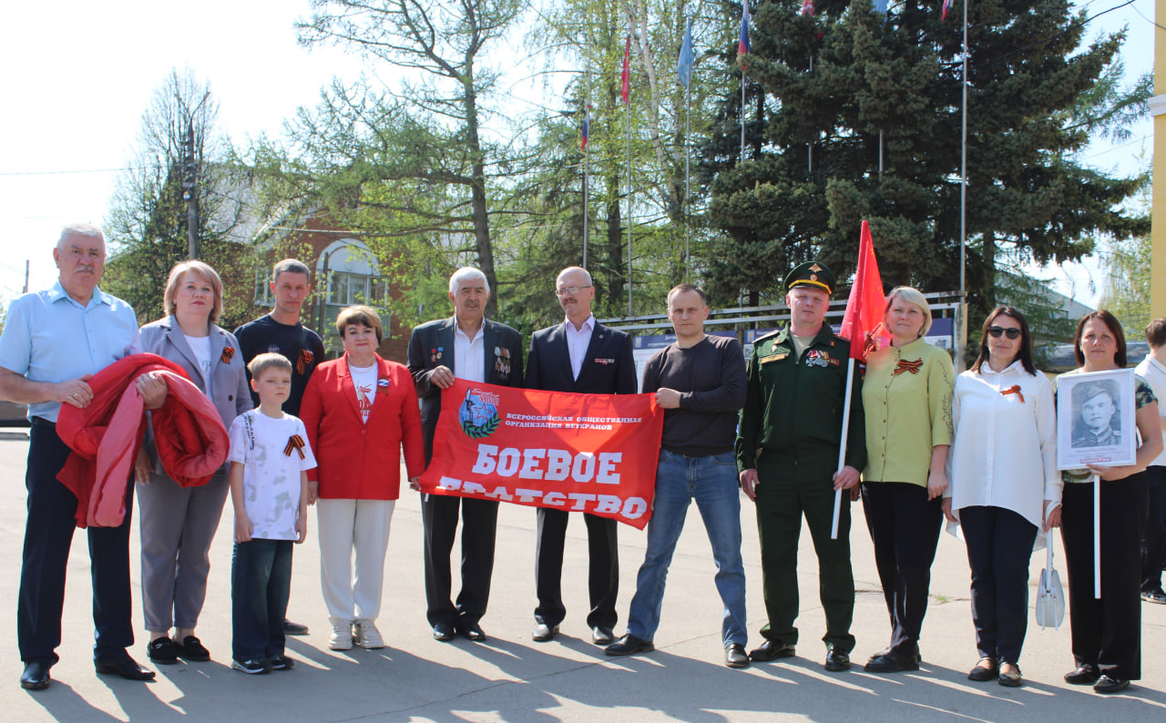 Под звуки песни «День Победы» участники митинга развернули полотнище Знамени Победы, а затем почтили память воинов Великой Отечественной войны минутой молчания.