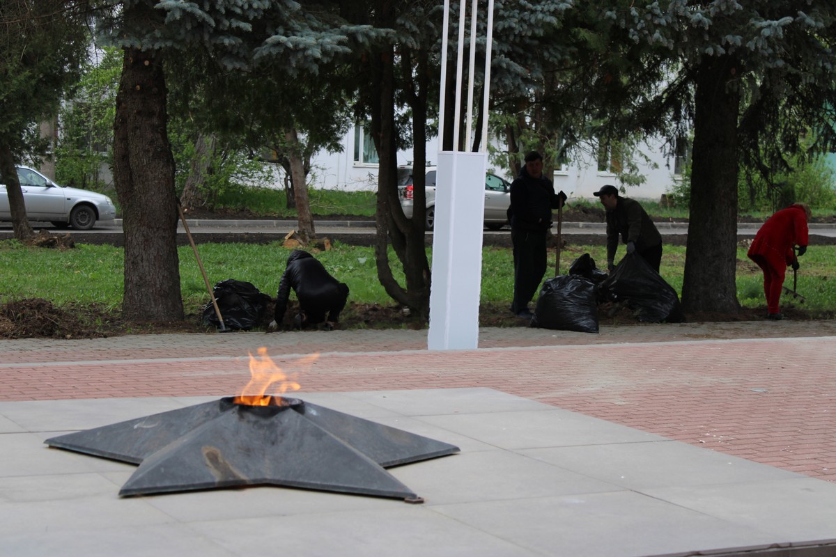 – Мы подытоживаем месячник чистоты в нашем городе, в регионе, – сказал он. – Сегодня, 26 апреля, очень много людей вышли, чтобы прибраться в этом святом месте. Мы должны к 80-летнему юбилею Великой Победы навести здесь порядок. Здесь уже высажены молодые туи, проложен новый асфальт. Будем встречать праздник в чистоте.