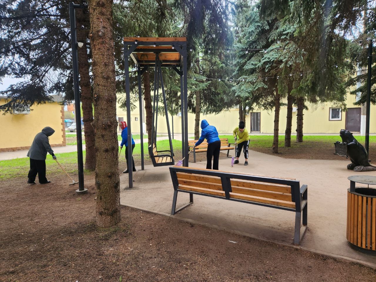 Субботник прошел успешно: собрали много мусора, убрали спиленные ветки, опавшие листья и мусор, привели в порядок малые архитектурные формы.