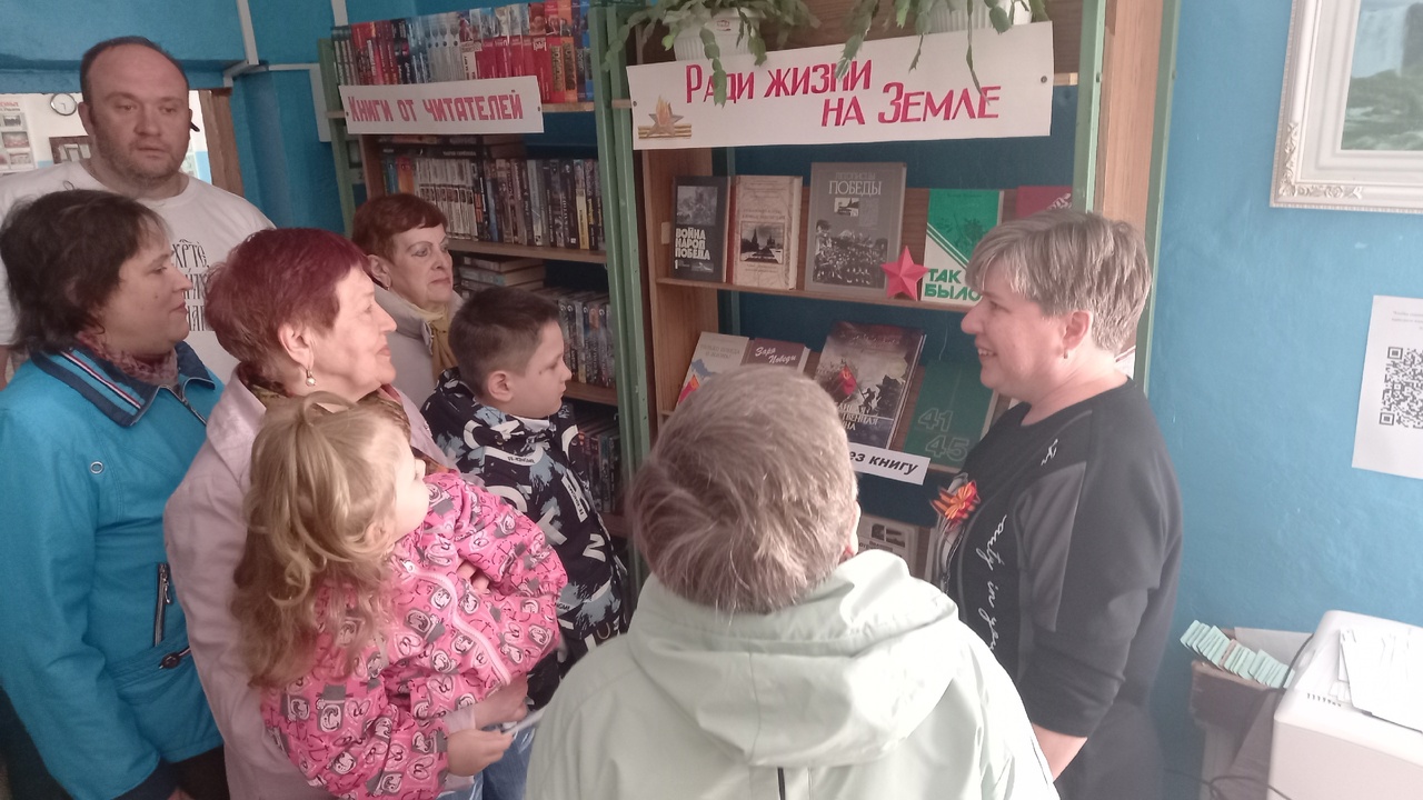 В библиотеке-филиале № 7 микрорайона Руднева открылась книжная выставка «Ради жизни на земле», посвященная 80-летию Победы в Великой Отечественной войне. Событие собрало представителей старшего поколения, для которых сотрудник библиотеки провел экскурсию по экспозиции.