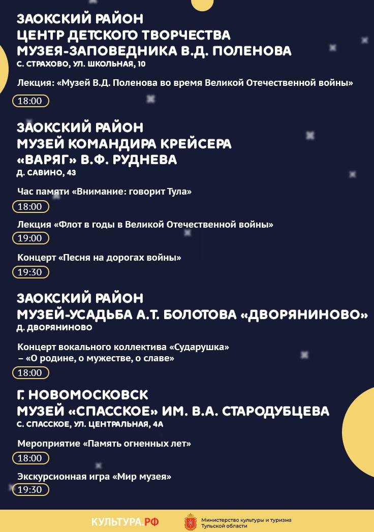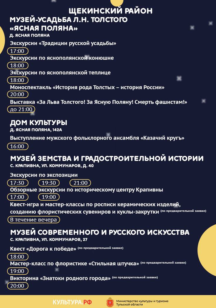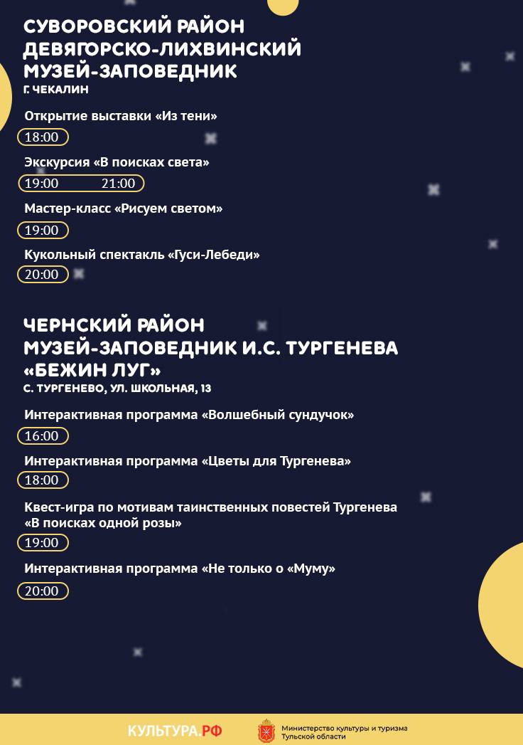 С 17 на 18 мая Тульская область станет участником федеральной акции «Ночь музеев». Инициаторами мероприятия выступают Министерство культуры России и портал культурного наследия «Культура.РФ».