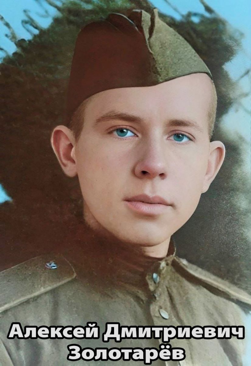 В 1943 году Алексей Дмитриевич Золотарев был призван в армию и направлен на обучение в 1-е Московское пулеметное училище. В 1944 году под Ленинградом в бою при форсировании реки Свирь в районе Лодейного поля боец Золотарев получил ранение ноги осколком фугасного снаряда.