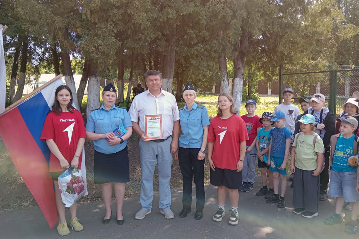 Официальный старт школьного лагеря в Донской школ № 1 на Бобрик-Горе прошел ярко и трогательно. Под звуки государственного гимна участники Движения Первых развернули российский триколор, символизируя начало летнего сезона для юных мечтателей и путешественников. Дети собрались вместе, наполнив пространство радостными улыбками и искренним восторгом от предстоящих перемен и новых встреч.