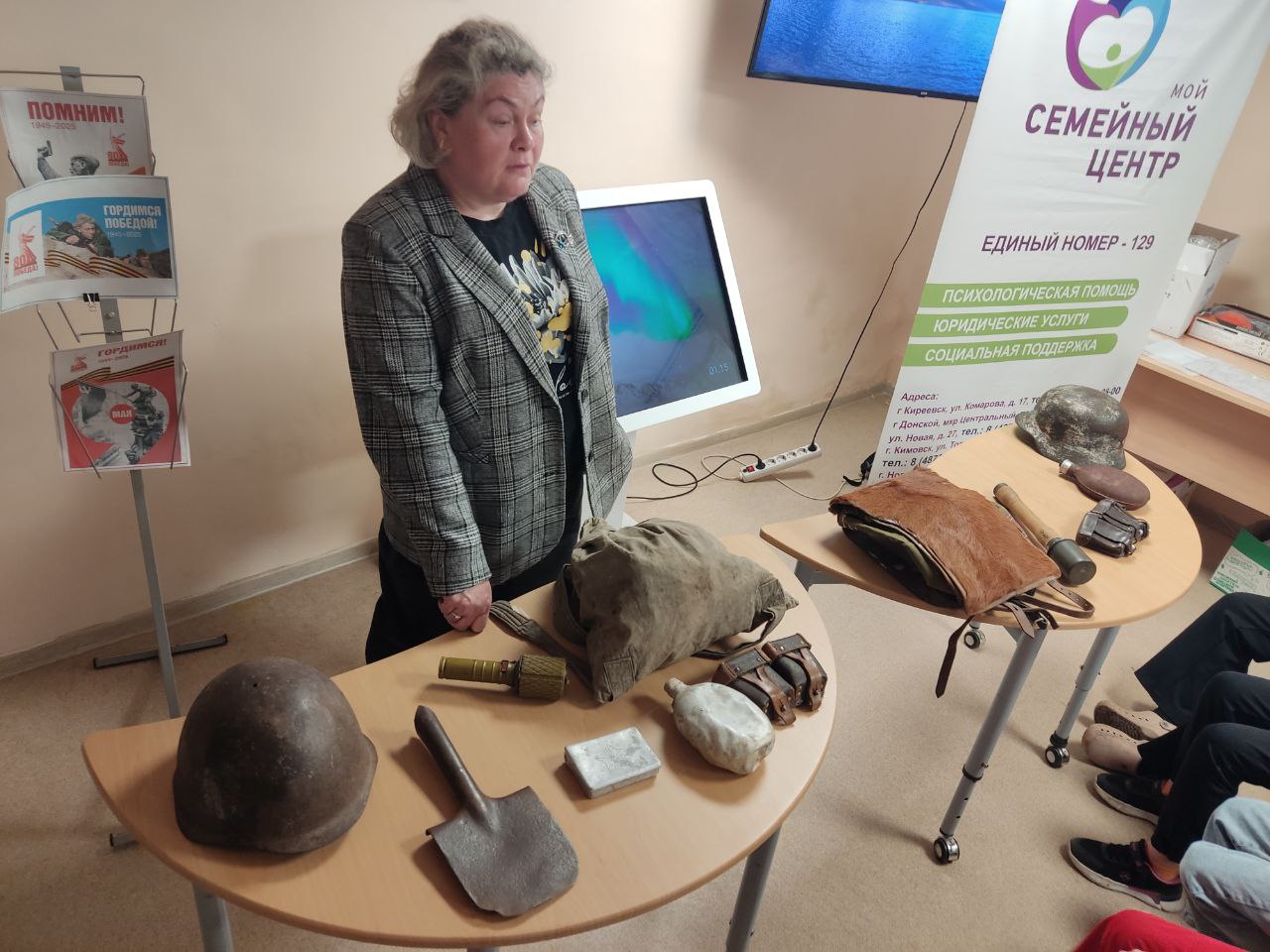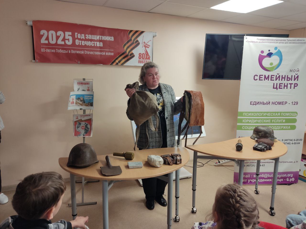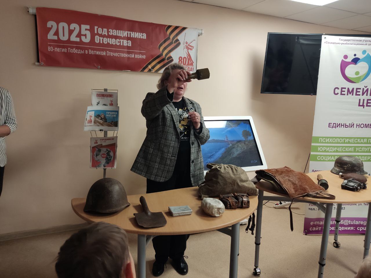 Представитель историко-мемориального музейного комплекса «Бобрики» осветила подвиги детей-героев Великой Отечественной войны. Особое внимание было уделено истории юного разведчика из Донского - Василия Козлова.