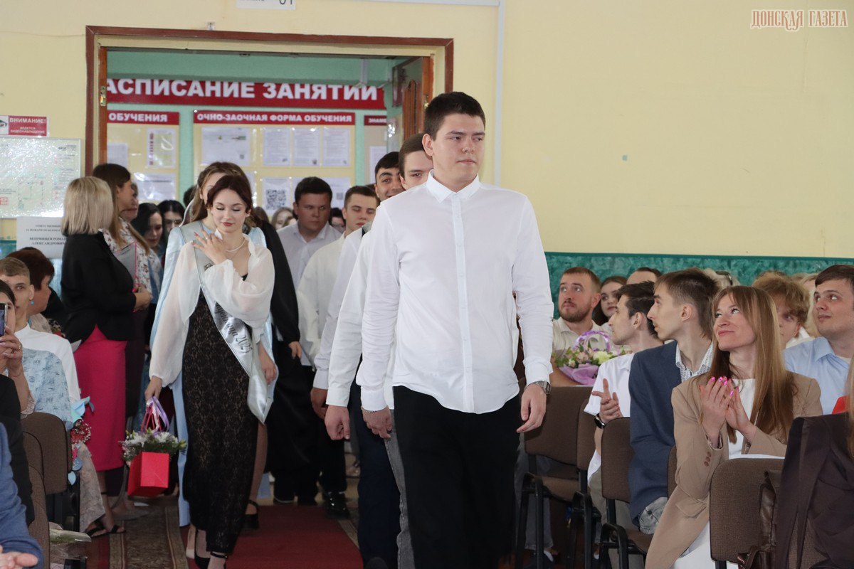 Не только школьники масштабно отмечают окончание обучения и переход к новому жизненному этапу. В Донском политехническом колледже также состоялся выпускной вечер под названием «Окрыленные верой, надеждой и любовью», во время которого будущие специалисты получили напутствия от почетных гостей, первых лиц города и руководства учебного учреждения, и сами поблагодарили наставников за полученные знания.