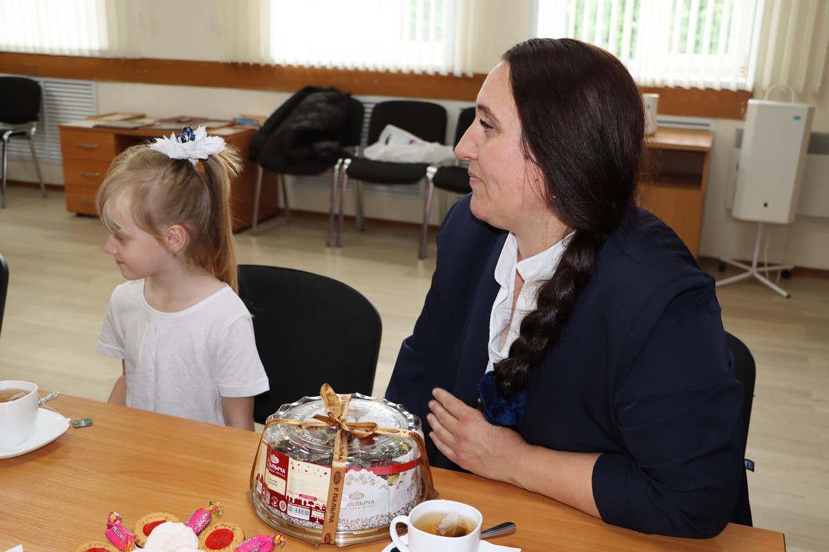 Надежда Школкина и Сергей Кулик вручили Воротынцевым сладкие подарки и блинницу для всей семьи, после чего началось праздничное чаепитие. Екатерина рассказала о том, что они с мужем и детьми постоянно чувствуют поддержку со стороны руководства города и области. Так, когда у них сломался автомобиль, губернатор Тульской области Дмитрий Миляев подарил им новый.