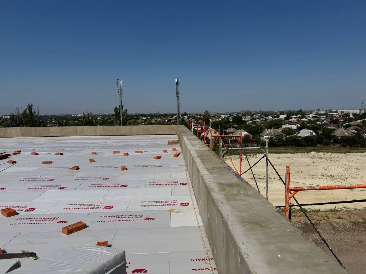 Кроме того, ведутся работы по устройству кровельного покрытия трёхэтажной части школы.