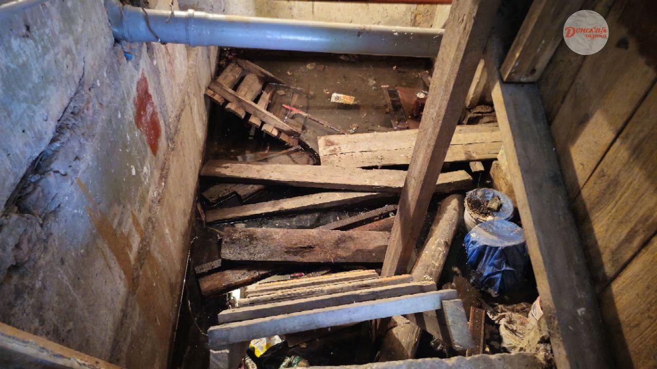 – Проблемы начались примерно четыре-пять лет назад. Нам сделали ремонт, поменяли трубы, и всё было хорошо. Но потом стало подтапливать, появился неприятный запах. Нам сказали, что забиваются колодцы. Мы были на приеме в администрации, где пообещали, что все сделают. Здесь раньше висела табличка «Убежище», ее недавно сняли. На днях приезжала машина, чистили колодцы. А в подвале вода как стояла, так и стоит, – сказала дончанка.