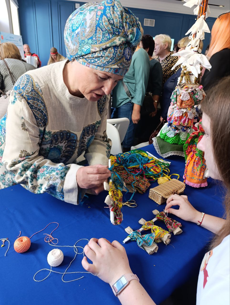 Новинкой праздника стали мастер-классы "Творим для души!", где старосты и представители ТОС делились своими талантами. Город Донской на этом мероприятии представила председатель Донского городского Женсовета и член Общественного совета города, Ирина Мамичева. Она провела мастер-класс по изготовлению куклы-мотанки "Вера. Надежда. Любовь", вызвав большой интерес у участников.