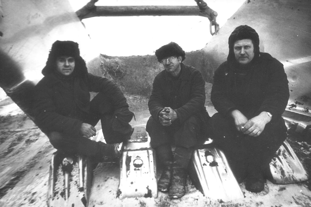 – У нас был шагающий экскаватор на 15 кубометров и со стрелой в 90 метров, – сказал Виктор Катков. – Сохранилось фото, где бригадир Александр Иванович Гладких сидит со своим помощником в его ковше. Просто оцените размер, а ведь это не самый большой из тех, что были тогда в стране.