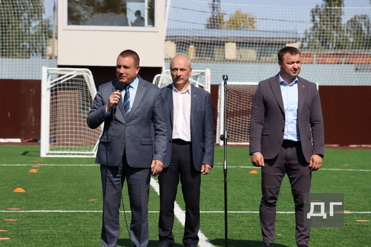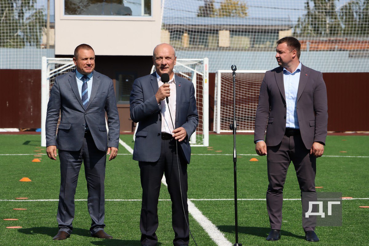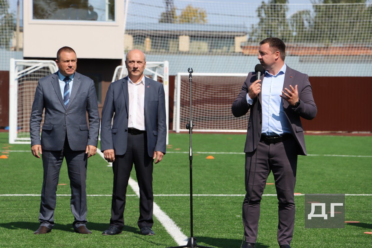 На нового футбольного поля на территории парк-отеля «Плазма» присутствовали министр спорта Тульской области Михаил Трунов, глава администрации города Донского Сергей Кулик и председатель комиссии по экологии и сельскому хозяйству общественной палаты Вадим Баранов. О том, как это было, в нашем фоторепортаже.