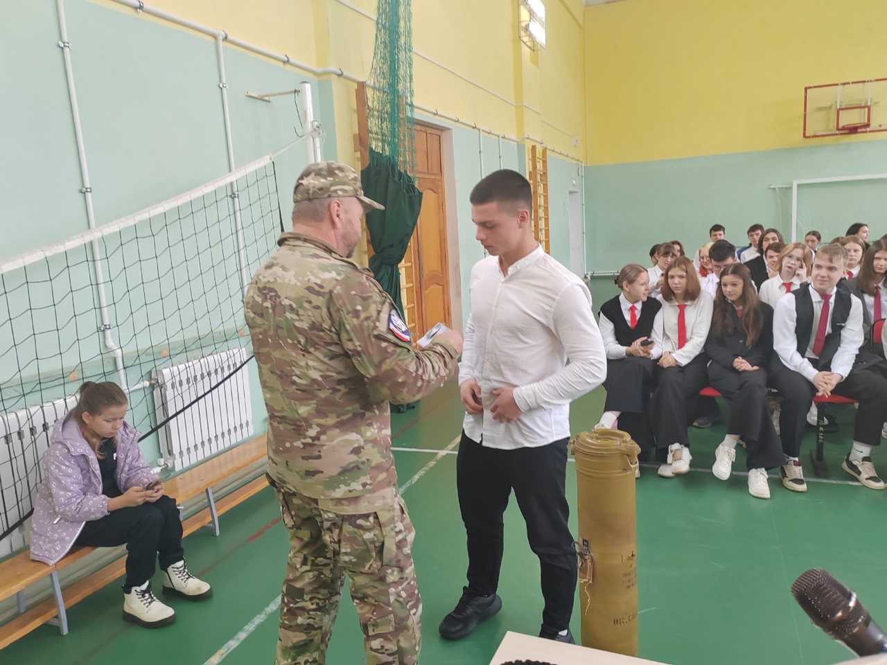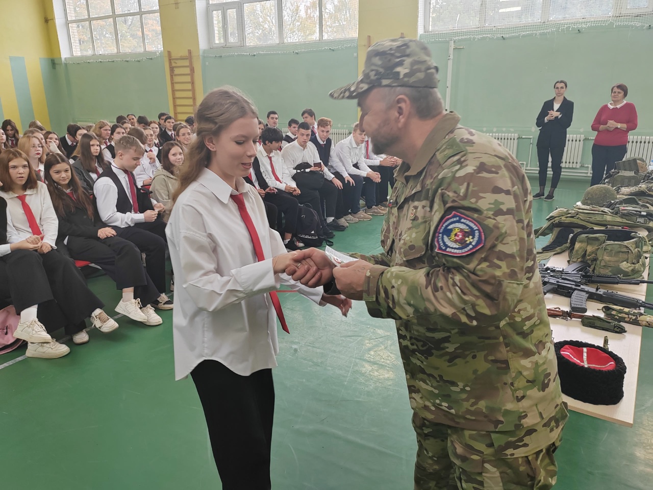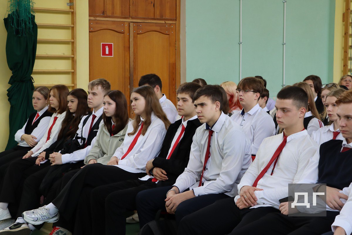 Мероприятие началось с выступления Алексея Ерзаулова, который предупредил школьников об участившихся случаях звонков и сообщений в мессенджерах со стороны представителей Службы безопасности Украины, которые пытаются подкупать подростков небольшом денежным вознаграждением, давая им задание что-то сфотографировать или поджечь. Александр Ермолаев при этом добавил, что слова вербовщики обычно не держат, обещанных денег не платят.