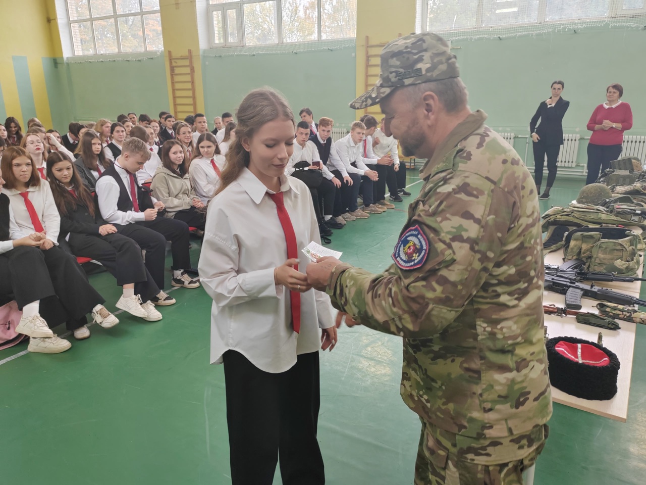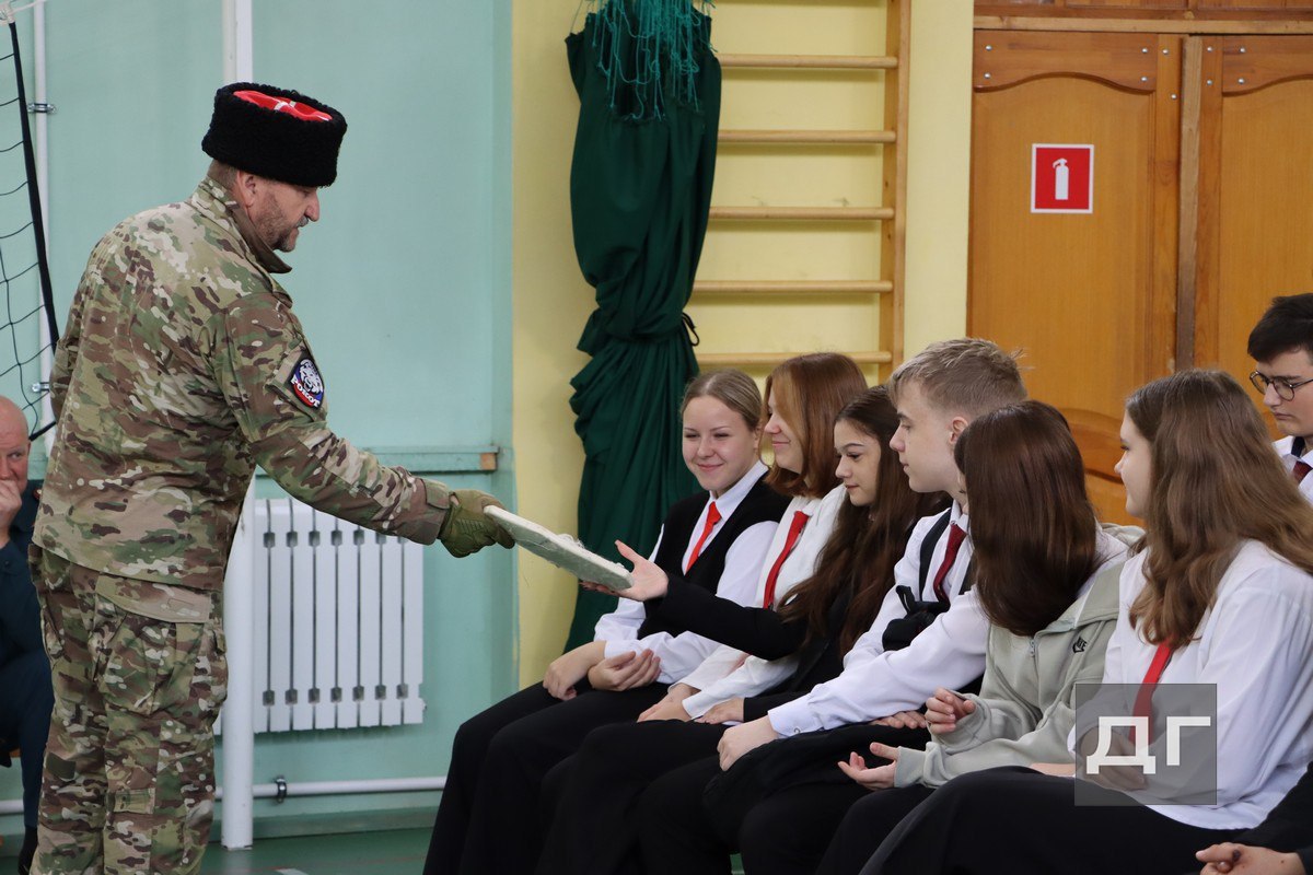 В Донском, в школе № 3 имени Страховой З.Х., состоялся патриотический урок, который провели для старшеклассников представители казачества, МЧС и военно-спортивного патриотического клуба «Ратник».