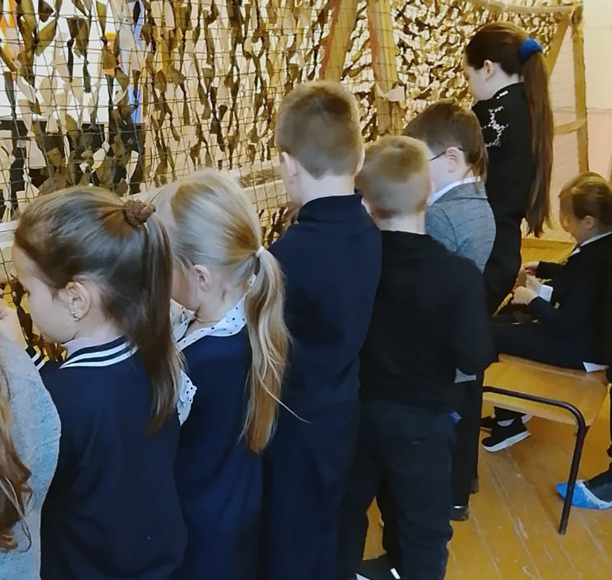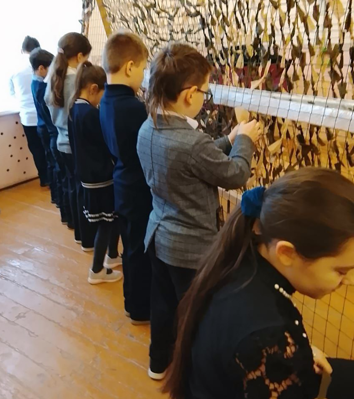 Ученики 2 класса школы № 13 вместе с родителями приняли участие в акции по плетению маскировочных сетей. Мероприятие прошло в рамках патриотического воспитания и поддержки участников специальной военной операции.