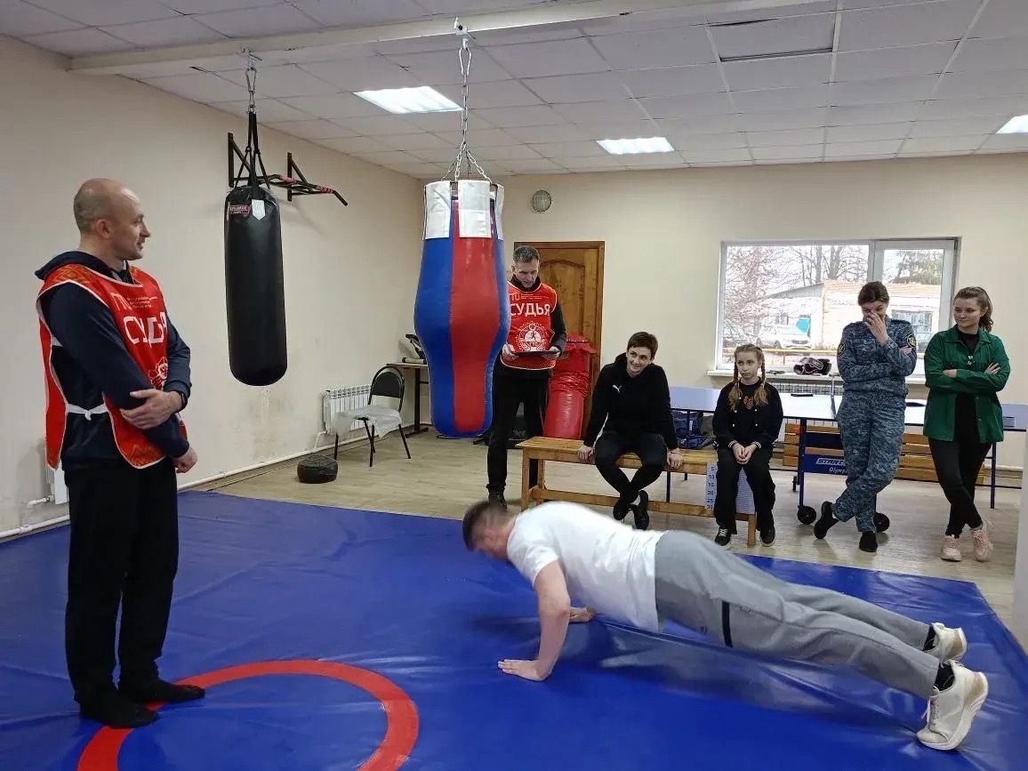Участники с честью продемонстрировали свою физическую подготовку. В программу вошли различные дисциплины: сгибание и разгибание рук в упоре лежа, наклон вперед из положения стоя, поднимание туловища из положения лежа, рывок гири (16 кг), бег на 60, 1000, 2000 и 3000 метров.