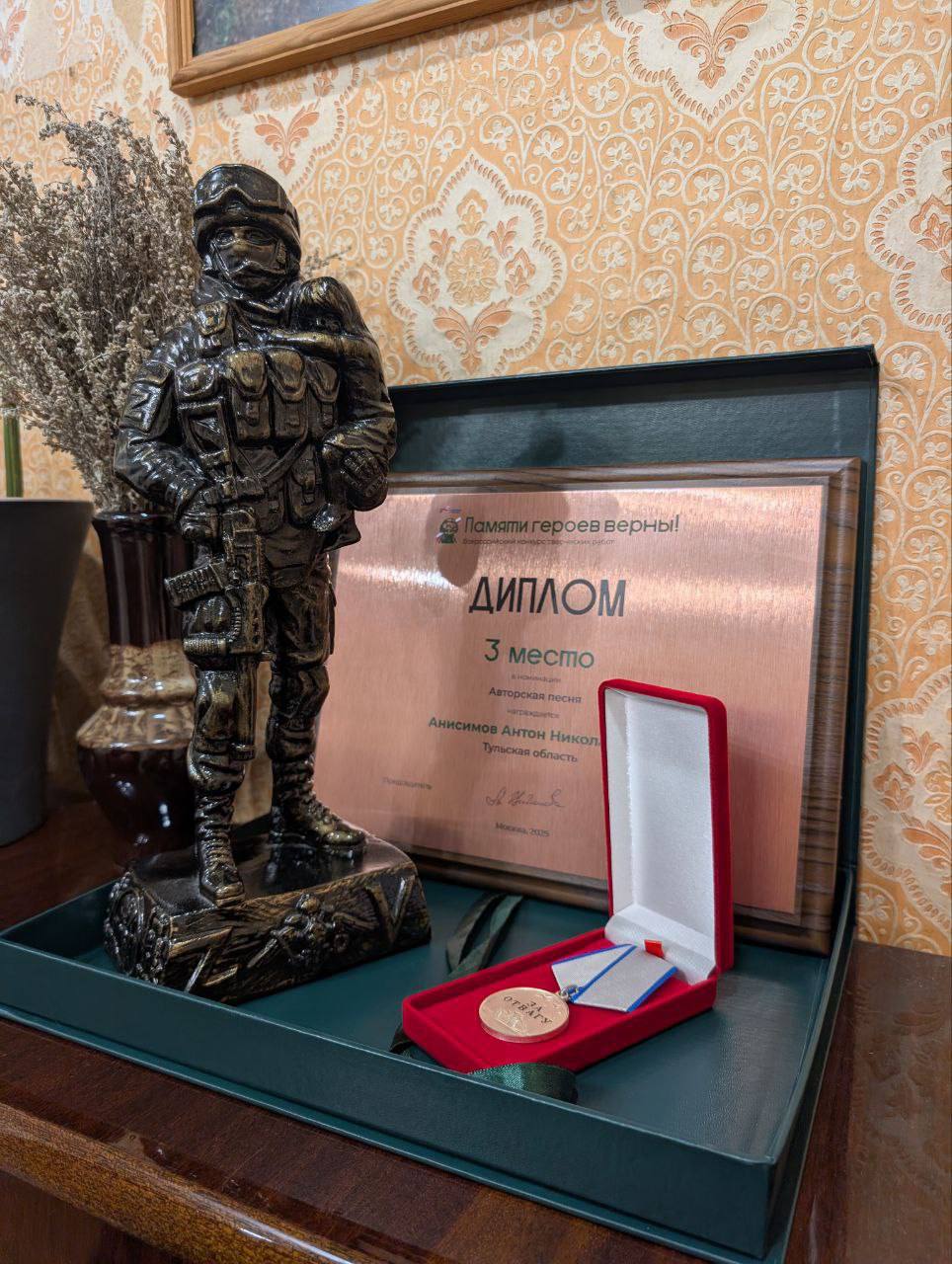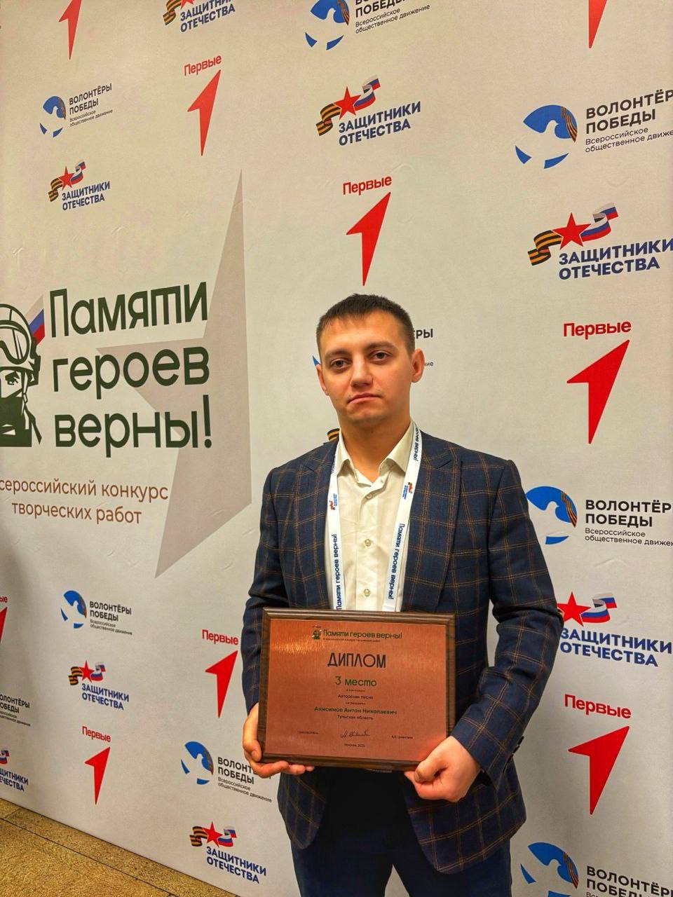 В Москве подвели итоги Всероссийского конкурса творческих работ «Памяти героев верны!», организованного Государственным фондом «Защитники Отечества». Партнерами конкурса выступили Общероссийское общественно-государственное движение детей и молодежи «Движение Первых», а также Всероссийское общественное движение «Волонтеры Победы». Тульский ветеран СВО стал призером в номинации «Авторская песня».