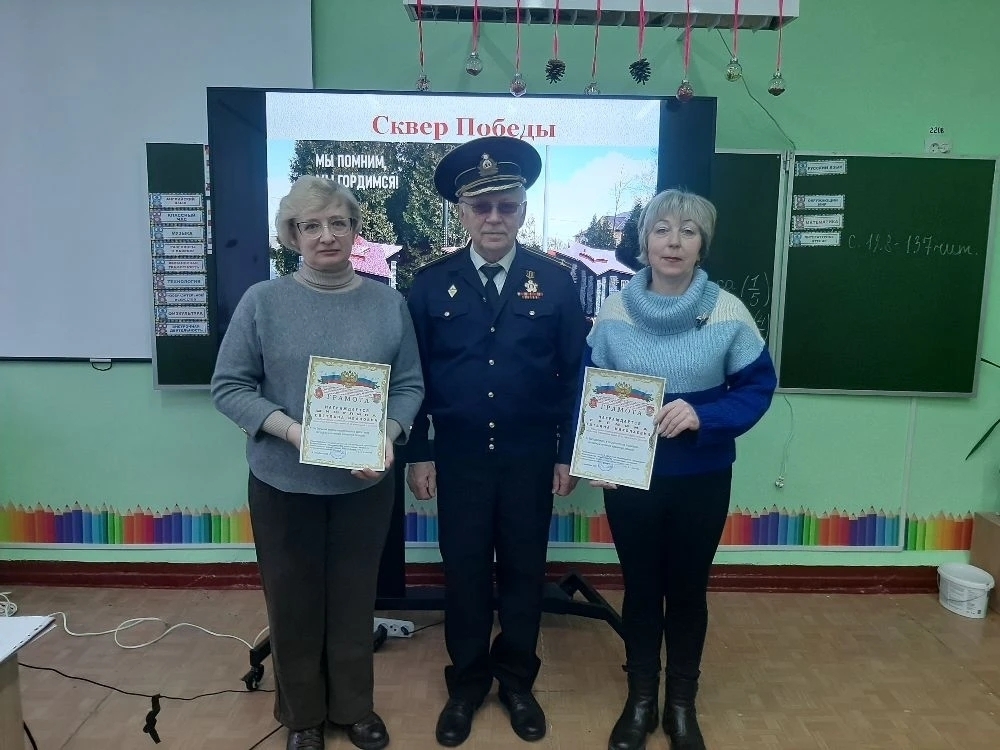 В завершение мероприятия Виктор Раст вручил сотрудникам библиотеки Татьяне Ереминой и Светлане Шишулиной Почётные грамоты Тульской областной общественной организации ветеранов за большой вклад в патриотическое воспитание молодёжи и активную жизненную позицию.