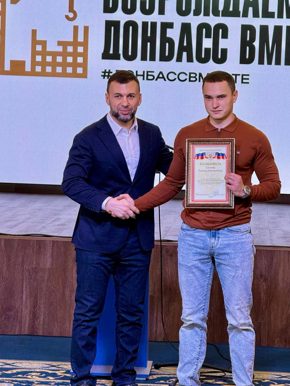 Глава Донецкой Народной Республики Денис Пушилин вручил благодарности тульским сотрудникам блока ЖКХ и строителям за их вклад в восстановление инфраструктуры региона. Об этом сообщил в МАХ губернатор Тульской области Дмитрий Миляев.