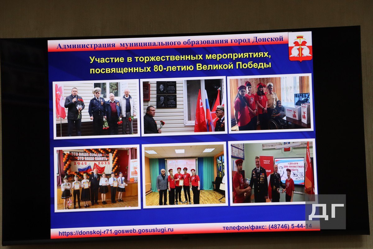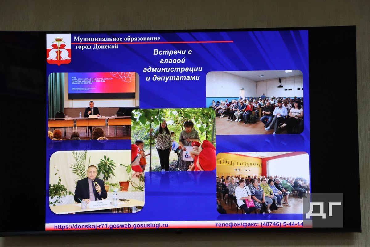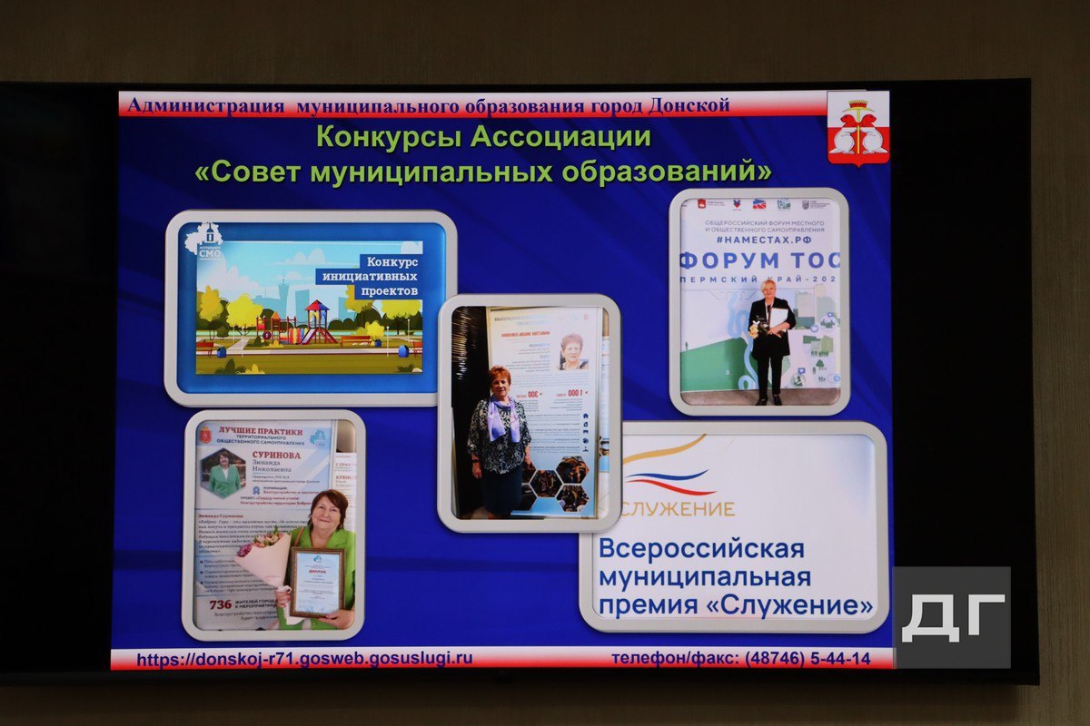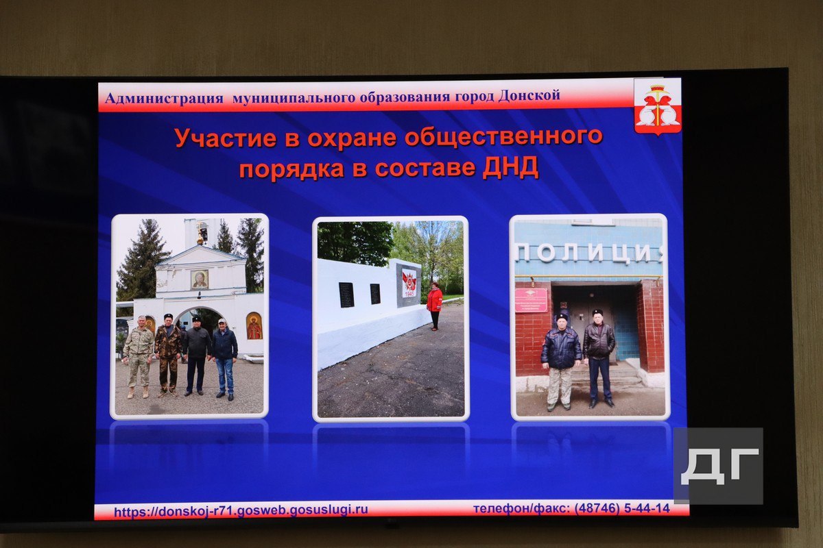 Помимо этого, председатель перечислила достижения некоторых членов Общественного совета, которых они достигли, участвуя в различных конкурсах, организуя мероприятия к праздникам или участвуя в патрулях ДНД. Подчеркнула, что работа Общественной приемной оказалась плодотворной, было проведено 50 приемов, в числе которых 2 – с депутатом Тульской областной Думы Еленой Гребневой. Рассказала о работе членов совета по сбору гуманитарной помощи. Она также отметила роль городских СМИ – «Донской газеты» и «ТВ Донской» – в освещении мероприятий, в организации которых принимали участие члены Общественного совета.