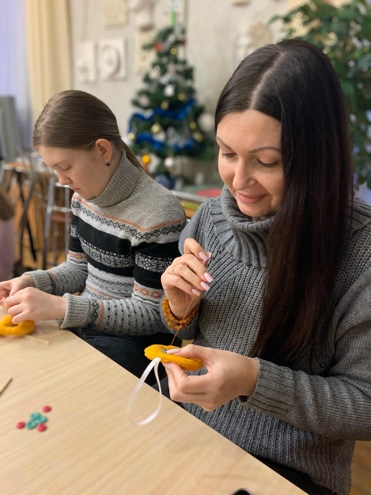 За рукодельным столом собрались представители сразу нескольких семей. Такая форма проведения мастер-класса оказалась очень удачной, ведь это позволило каждой семье создать сразу несколько подков – символов счастья и удачи!